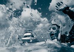 Jason 开始大口喘气,他的呼吸变的越来越浅,他挣扎着推动三个气瓶穿过水中,水流继续将他带的远离潜水船。上升到水面后,他吐出了他的调节器并试图叫船,但他没办法保持头部浮出水面。在水面上苦苦挣扎时他咳嗽被水呛到,再次滑到水下前他找到调节器并将其重新咬在嘴里,他按下按钮再次尝试给BC充气,但他似乎仍然无法保持头部露出水面,他伸出双臂挥了挥手,这个时候他感觉脖子上一阵刺痛顺着左胳膊往下,他知道他快要死了。