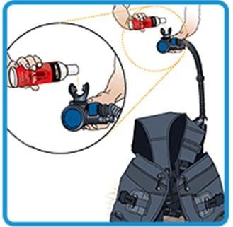 按着 Inflator 的排气按掣,并注入4樽盖份量(约1盎司)的 B.C. Life 到 Inflator 的咬咀内,使 B.C. Life 能直接流进气囊内。