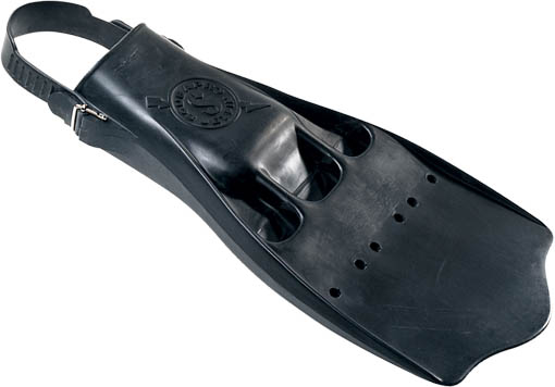 虽然用蛙踢的方法在水下解决了阻力和动力问题,而且非常有效,但还是有不尽如人意的地方。问题出在水面,浮出水面以后,潜水员仰面踢回到船边或者岸边还是相当吃力的,因为这个时候蛙踢的效果并不好,上下踢动又要遇到巨大的兴波阻力和涡流阻力。